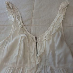 Off white colored ruffled tank from Forever 21 featuring a working half zipper on front and ruffled at necklines and straps. Great for layering and with jeans.