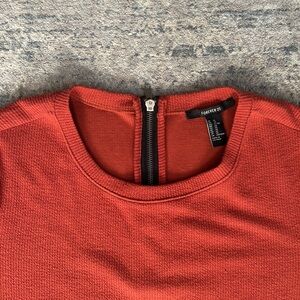 a super soft short sleeve ribbed dress from forever 21. rust colored. features zipper on back. runs small. kb