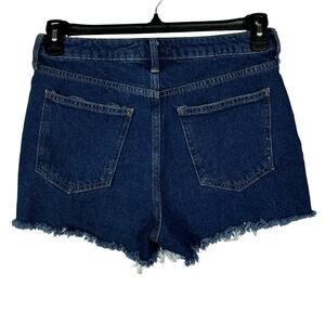 Forever 21 SZ 28 Jean Shorts Frayed Hems Zip-Fly Hi-Rise Medium Wash Blue