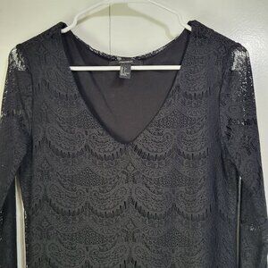 Forever 21 SZ LG Lace Long Sleeve Little Black Dress Goth Whimsigoth Date Night