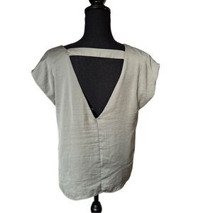 Forever 21 Sage Green Silk Top with Deep V-Neck Back Size Small