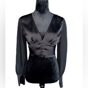 Forever 21 Satin Black Long Sleeve Crop Top Corset Blouse Size Medium