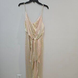 Effortless and romantic, this Forever 21 satin slip dress features a soft peach and cream floral print, adjustable spaghetti straps, and a flattering draped cowl neckline. The silky material gives it a luxe look that transitions perfectly from day to night. Lightweight and flowy — ideal for special occasions or an elegant night out.