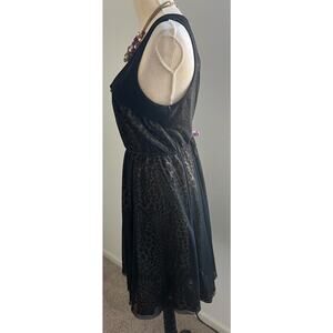 Forever 21 Satiny Animal Print Under Black Mesh Sleeveless Zip Front Dress 1X