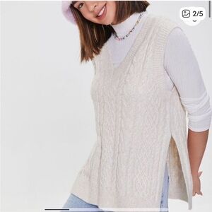 Forever 21 Seafoam Sage Green Cable Knit Sleeveless Sweater Vest w Side Vent. M