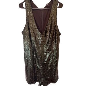 Forever 21 Sequin Deep V-Neck Jumpsuit Green/Black Size 2X
