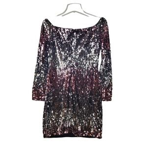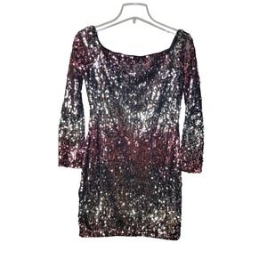 Forever 21 Sequin Sparkly Bodycon Mini Dress Medium Silver And Pink Long Sleeve