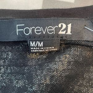 Forever 21 Sequin Tee Black Charcoal Mesh Knit Cropped Short Sleeve Round Neck M