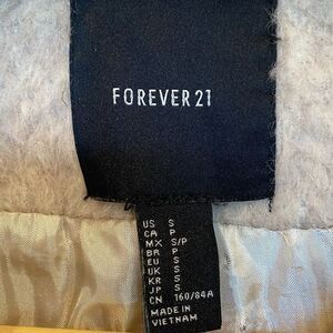 Forever 21 Shearling Front Zip Coat with Faux Leather Trim Women's S