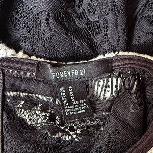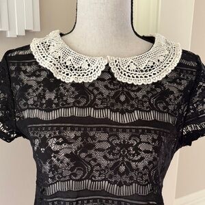 Forever 21 Sheer Black Lace Crochet Peter Pan Collar Short Sleeve Top M