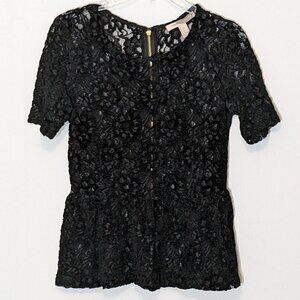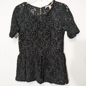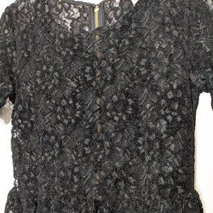 Forever 21 Sheer Black Lace Tunic Top; Short Sleeves; Bottom Ruffle; Size Small
