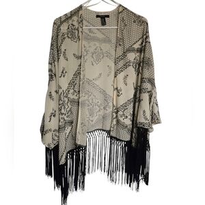 Forever 21 Sheer Kimono 3/4 Sleeve Fringe Open Top S/M