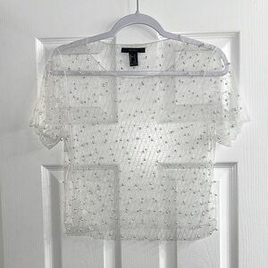 Elegant sheer blouse with delicate bead detailing. Perfect for layering. Perfect condition/NWOT.