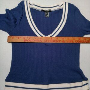Forever 21 Shirt Juniors Medium Baby Crop Top Ribbed Blue Varsity Academia Y2K