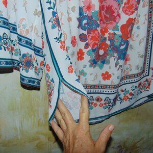Elevate your wardrobe with this beautiful mixed floral boho blouse from Forever 21. Featuring an off-the-shoulder neckline and flutter bell sleeves, this blouse is perfect for any occasion, from casual outings to parties and even travel. The lightweight, breathable fabric is a combination of polyester, spandex, and elastic, making it comfortable and stretchy to wear. The blouse is adorned with a vibrant multicolor floral pattern and a smocked design off the shoulder. It is perfect for those who love bohemian, tropical, and retro styles. This blouse is machine washable and fits true to size. Add this beautiful piece to your wardrobe today and make a statement wherever you go.Tag size: womens M