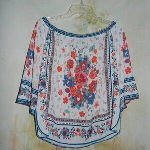 Forever 21 Shirt Mixed Floral Flutter Sleeve Boho Smocked Off Shoulder Blouse M