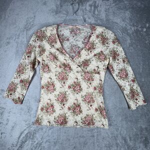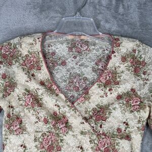 Forever 21 Shirt Womens Medium Ivory Pink Floral Babydoll 2000s Y2K Vintage
