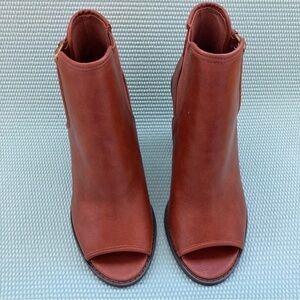 Forever 21 Shoes Womens Size 8 Peep Toe Ankle Booties Brown Faux Leather Heels