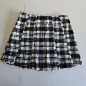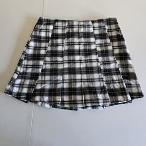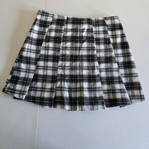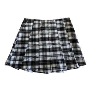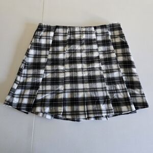 Forever 21 Short Skirt Women Sz M White Black Striped Print Pleated Fit