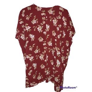 Forever 21 Short Sleeve Floral Red/Maroon Cardigan