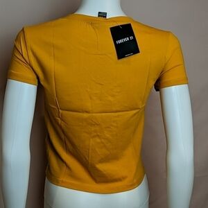 Get ready to rock summer style with this Forever 21 cropped, short sleeve, crew neck tee! Featuring a comfortable fabrication of cotton and a tailored fit, this cropped tee is sure to serve as one of your wardrobe favourites this season.