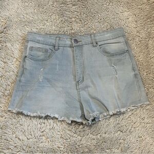 Forever 21 Women's Light Blue Denim Raw Hem High Rise Jean Shorts Size 31.
