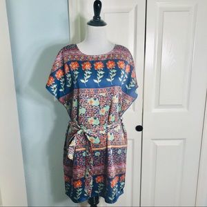 Forever 21 Silky Boho Mukticolor Floral Short Sleeve Belted Mini Dress Size Smal