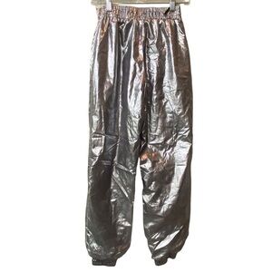 Forever 21 Silver Metallic Y2K Pants XS Joggers Futuristic Astronaut Parachute