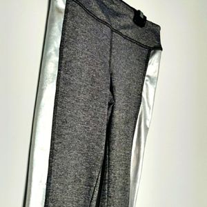 So cute gray and silver metallic forever 21 leggings. Waist has inside pocket. Side metallic detailing. Size small. 13 in across waist. 26 in inseam. Mint condition