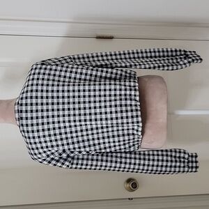 Forever 21 Size L Black & White Checker Cropped Pullover, Long Sleeve, Drawstring Waist. Excellent Used Condition. Not quite sweatshirt feel, but not T-shirt feel either....a bit in between. Please refer to measurements in photos to ensure proper fit.