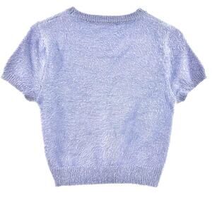 Forever 21 Size Large Sweater Purple Short Sleeve Cropped Fuzzy Knit Preppy