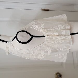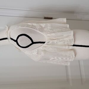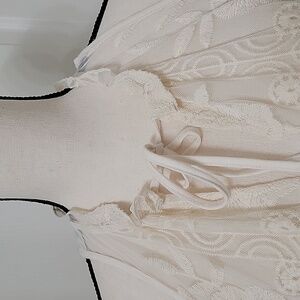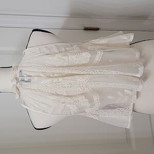 Forever 21 Size S Ivory Sheer / Lacey Sleevless Blouse with Tie Neckline. NEW Super Fun Top. Need bra or bandeau underneath. Please refer to measurements in photos to ensure proper fit.