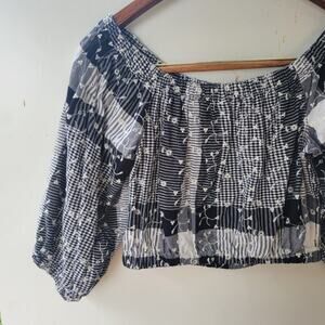 Forever 21 Size S Off Shoulder Puff Sleeve Cropped Top Womens Boho Preppy