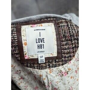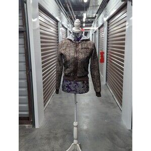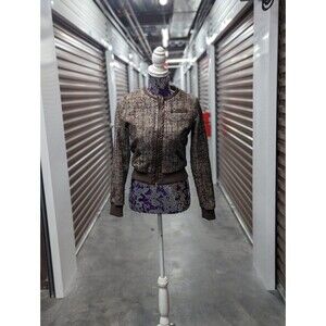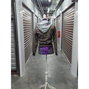 Forever 21 Size Small Brown Tweed Bomber Jacket with Sweater Grey Hood