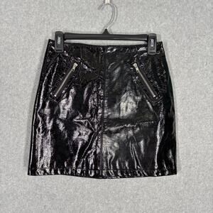 Forever 21 Skirt Small Black Mini Faux Patent leather Zippers Shiny Witchy Y2K
