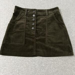 Forever 21 Skirt Womens XS Olive Green Corduroy Button Front Pockets Mini Retro