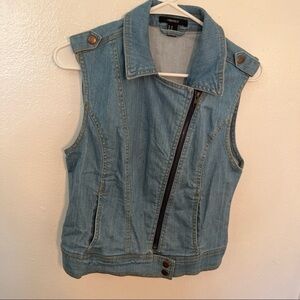 Forever 21 Sleeveless Asymmetric Zip Denim Vest