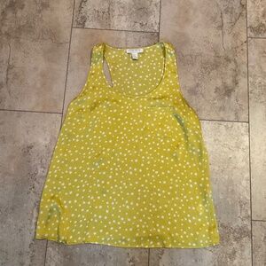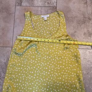 Forever 21 Sleeveless Blouse Chartreuse Polka Dot Sheer Sz M Pocket Pullover