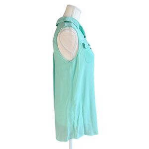 Turquoise sleeveless collared shirt with button up front and pockets #beachy #collared#sleeveless #blouse