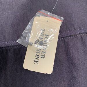 Forever 21 casual sleeveless jacket in dark charcoal gray cotton blend fabric with rhinestone embellishments in a floral design on the shoulders and chest. Full front concealed zipper with metal snaps. Zipper allows for the jacket to be worn with a v-neckline or a mock turtle neck. Four front pockets. Military styling with shoulder epaulets. Drawstrings at the waist for custom flattering fit. NWT.