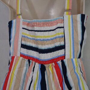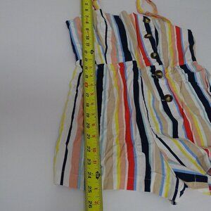 Forever 21 Sleeveless Multicolor Stripe Buttoned Romper Women Size M Rayon Linen