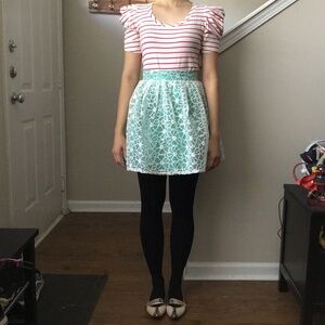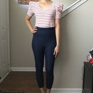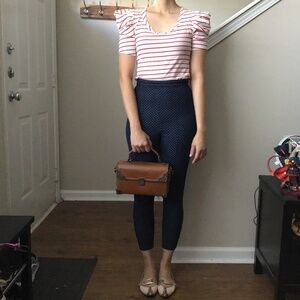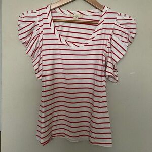 Forever 21 Small Striped Red Tee with Exaggerated Shoulder Sleeves