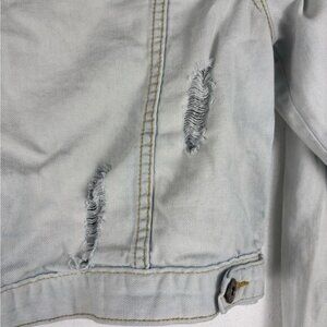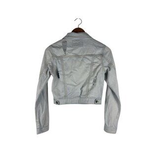 Forever 21 Small Women's Light Blue Wash Denim Distressed Jean Jacket Cropped