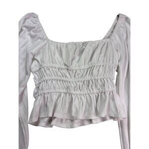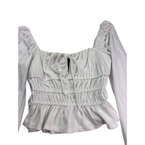 Forever 21 Smocked Cropped Peasant Top Size S Keyhole Tie Front White Festival Boho