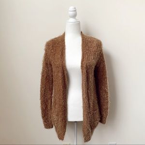 Forever 21 Soft Fuzzy Camel Open Front Cardigan