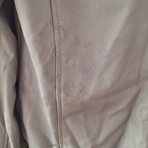 Soft Gray color with chrome zippers, side zip pockets and classic moto collar.