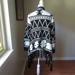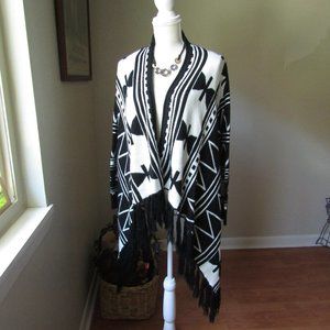 Black & White Fringe Knit Waterfall Sweater Size M/L