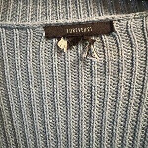 Cozy, chunky knit cardigan from Forever 21 in a muted steel blue shade. Features a deep V-neck, ribbed texture, long sleeves, and front button closure. Easy, slouchy fit that works perfectly over tees, tanks, and dresses.