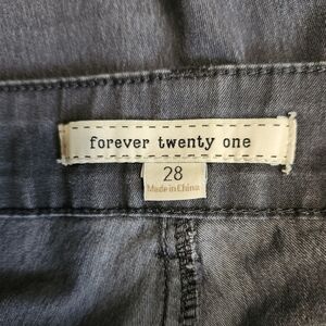 Forever 21 dark gray, straight leg jeans with zipper and button closure.