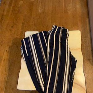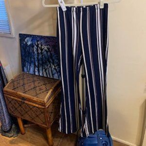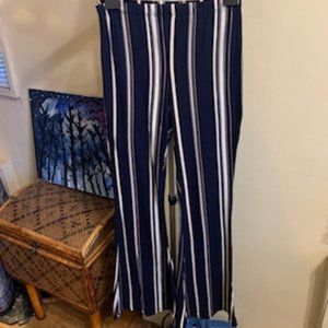 stretch-knit flared pants featuring an allover striped pattern and an elasticized waistband.